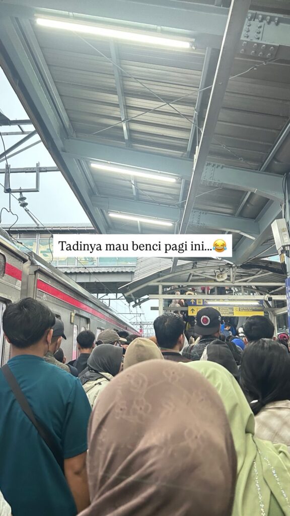 Strategi saya adalah mencari spot berdiri dekat bangku prioritas dan dekat border atau pintu batas antara dua gerbong. Di situ saya bisa menaruh tas yang berat dan berdiri sambil bersandar di dinding dan menaruh bokong mungil saya di panel yang menonjol ke depan. Lumayan untuk mengurangi beban tubuh yang harus ditanggung oleh kedua kaki. Tangan menggelayut di gelang-gelang dan bisa menjadi sandaran jika ingin terkantuk-kantuk sedikit karena di jam sepagi itu dan udara sedingin itu, sungguh ingin tidur lagi saja. Tak mau bekerja.